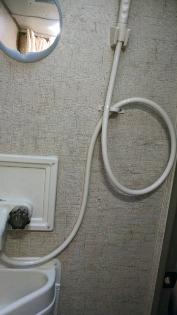 Part of the problem with the sink is water running down and/or splashing off of the shower hose. I just unscrewed the hose under the faucet to help at least that part of the problem. Still need to secure the now-dangling shower hose in a way that will still allow easy reattaching it for the few occasions when we will use the shower. Now need to figure out some type of "guard" to keep water from splashing over side of the sink.